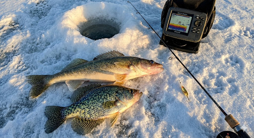 But inside the bucket, three eater-sized walleyes and a pair of slab crappies lay on the ice—a “concrete result” for the effort endured.